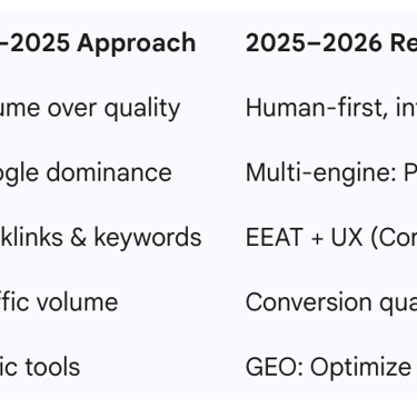 Here's a quick comparison of old vs. new SEO paradigms: